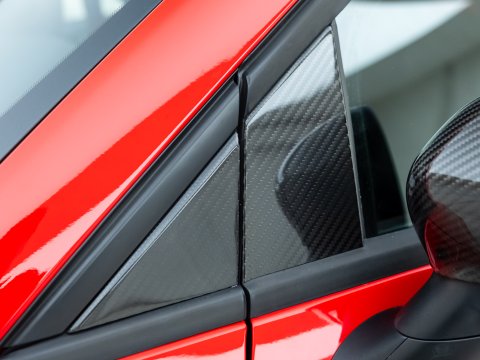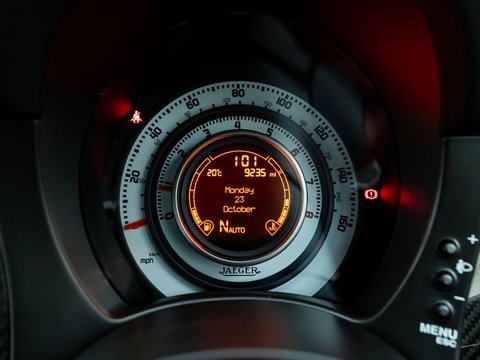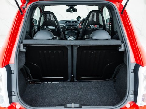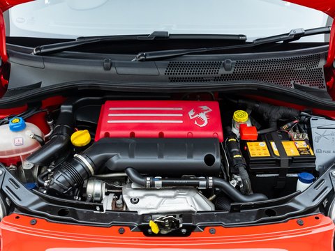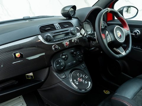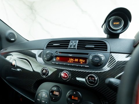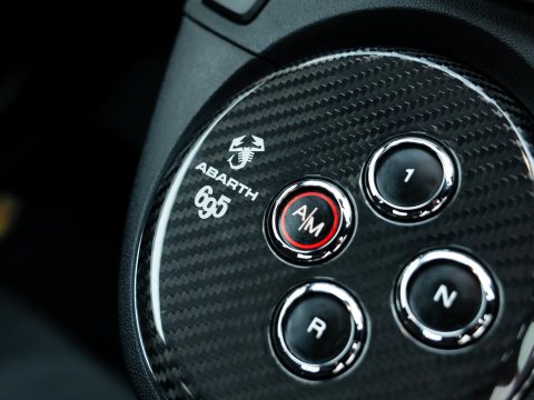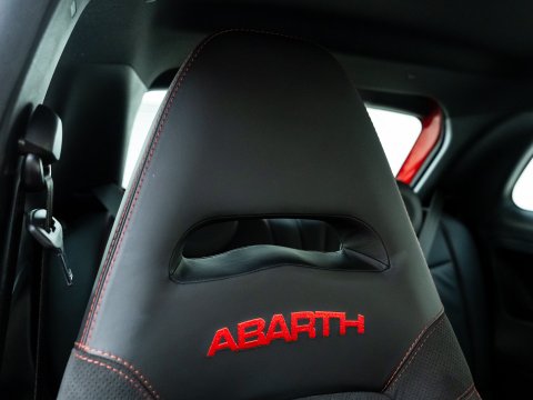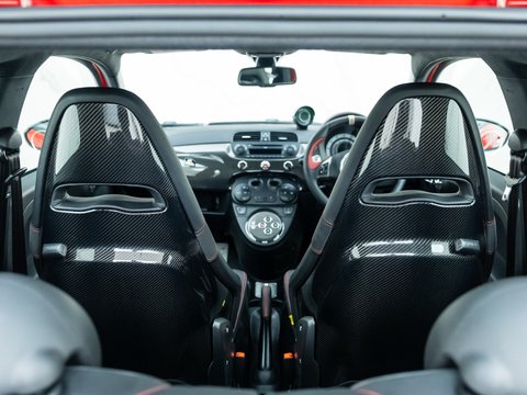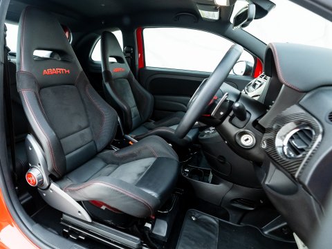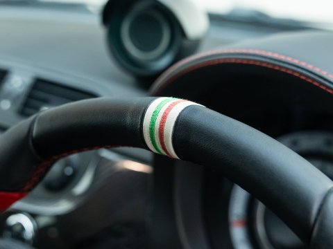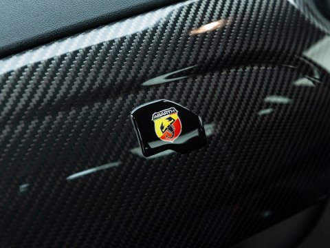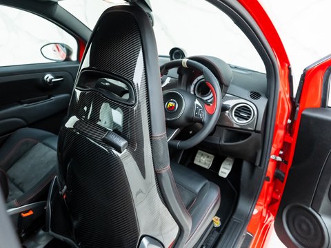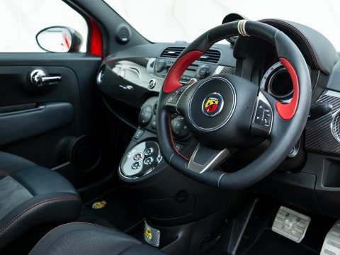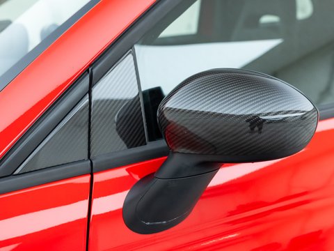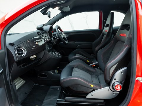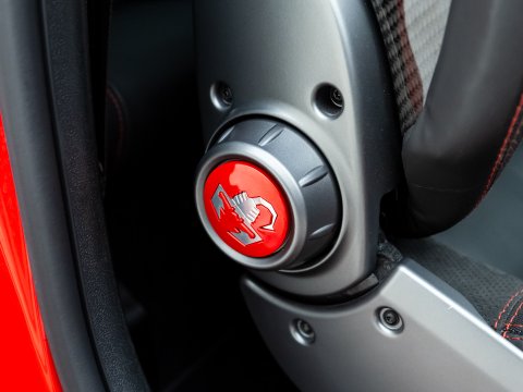 The Abarth 695 Tributo Ferrari is only available in red, with carbon fibre Sabelt bucket seats upholstered in leather and alcantara which are 10kg lighter than the regular seats, leather steering wheel and aluminium pedals. The car also comes with a tailored car cover, tyre pressure caps, car cleaning kit, alloy fuel filler cap, iPod holder and Ferrari badged warning triangle.