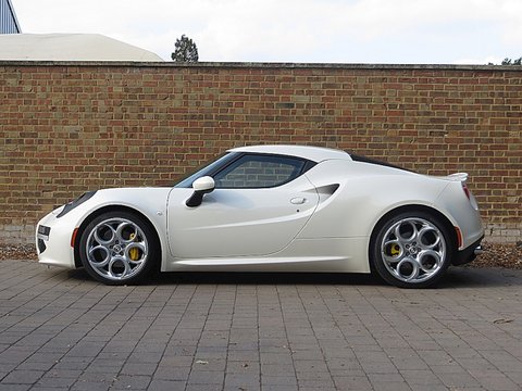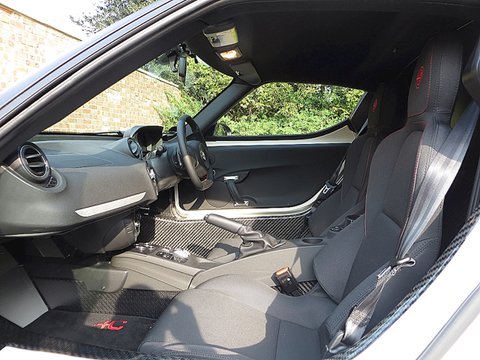 Romans are proud to offer this brand new Alfa Romeo 4C for sale presented in Madreperla White with black fabric cloth. Translated to 'Mother of Pearl' this is a pearlescent paint which differs from the matt finish of the Launch Edition cars. Featuring the all important racing pack this car has the benefit of being VAT Qualifying and has covered just 84 miles since it left the factory in Italy.