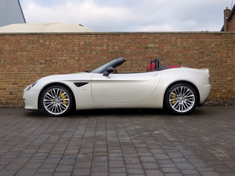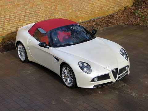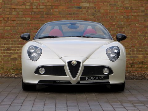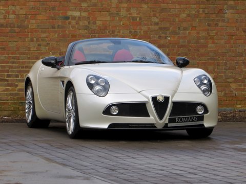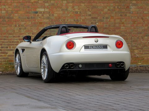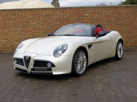 Romans are proud to offer this stunning 2010 Alfa Romeo 8C Spider for sale presented in 'Bianco Madreperla' which translates from Italian to 'White Mother of Pearl' and combines with Red Leather making it one of the most stunning looking cars of recent times. The 8C Spider is without doubt the must have Alfa Romeo/, with a full carbon fibre body-shell and an engine built by Maserati/, this car is a throwback to Alfa Romeo's fantastic heritage in which they dominated motor racing before Ferrari were around. With only 500 cars produced worldwide/, this is a fantastic opportunity to invest in a future classic.