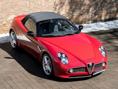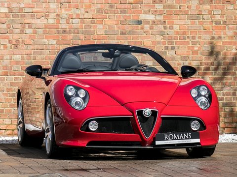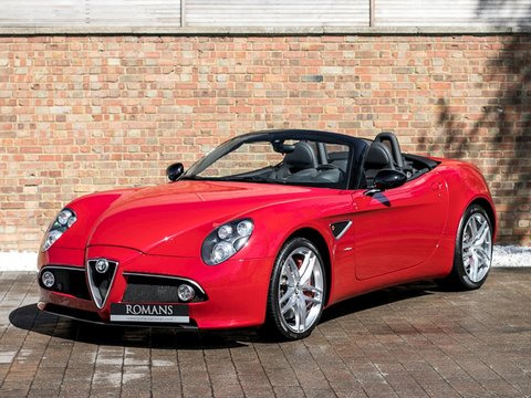 Romans are proud to offer this outstanding 2010 Alfa Romeo 8C Spider for sale presented in 'Rosso Alfa' with Nero Leather Interior. This spectacular example comes with a lovely specification including the fantastic 20" Ball Polished 5-Spoke Racing Alloys which was a very expensive optional extra when new. Furthermore, this car comes with the Leather and Carbon Fibre Roll Bar and must be one of the best examples on the market.