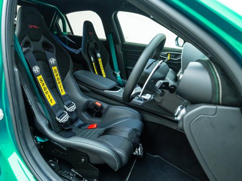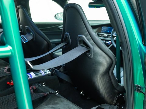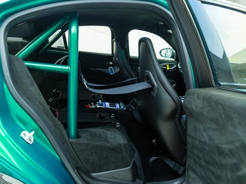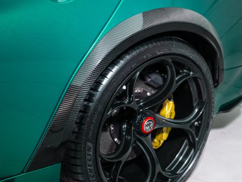 With a track-focused setup, the GTAm features a stripped-down interior with carbon fibre racing seats, no rear seats, and a host of lightweight materials to reduce weight. Its aggressive exterior is highlighted by a carbon fibre rear wing, extended front splitter, as well as carbon fibre wheel arches and a carbon fibre roof. It is the first ever saloon car to feature centre lock wheels and you also get carbon ceramic brakes as standard. Its suspension is tuned for maximum handling and agility, whilst the Akrapovič titanium exhaust system contributes to the weight saving as well as letting you fully enjoy that V6 harmony.