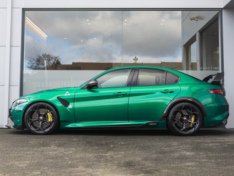 The Alfa Romeo Giulia GTAm was built by Alfa to celebrate their 110th birthday. Powered by a 2.9-litre twin-turbo V6 engine delivering 540 horsepower, it is the most powerful car that Alfa Romeo have ever produced and was described by famed motor journalist Chris Harris as essentially being a 4-door Ferrari.