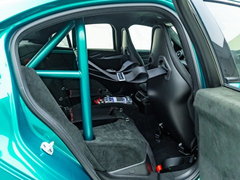 With a track-focused setup, the GTAm features a stripped-down interior with carbon fibre racing seats, no rear seats, and a host of lightweight materials to reduce weight. Its aggressive exterior is highlighted by a carbon fibre rear wing, extended front splitter, as well as carbon fibre wheel arches and a carbon fibre roof. It is the first ever saloon car to feature centre lock wheels and you also get carbon ceramic brakes as standard. Its suspension is tuned for maximum handling and agility, whilst the Akrapovič titanium exhaust system contributes to the weight saving as well as letting you fully enjoy that V6 harmony.
