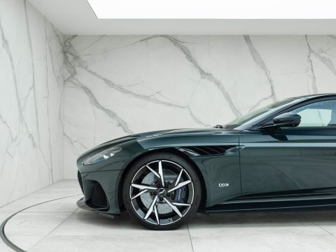 The Aston Martin DBS Superleggera takes the already fast and super stylish DB11 and turns everything up a notch to create a profoundly different and special offering. Differences start with the engine. Although the Superleggera shares the same 5.2L Twin-Turbo V12 with the higher-powered variant of the DB11, a clever ECU remap has increased power output significantly, to an astonishing 715bhp. Other marked changes over the DB11 making the Superleggera instantly recognisable include the lower wider stance, far more aggressive louvred side strakes and one of the largest most imposing front grilles you are likely to see on the road. At the rear of the car a dual diffuser and fixed blown rear wing work in conjunction to add 180kg of downforce at top speed, whilst a full width rear light bar gives an ultra-modern appearance.