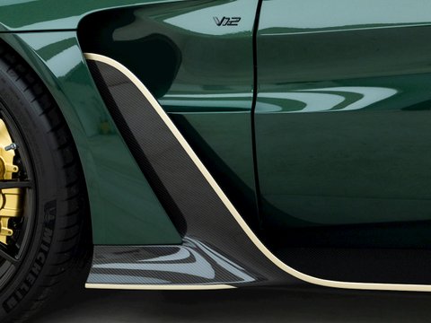 So here it is. The moment we have all been both anticipating and dreading – the final Aston Martin Vantage model. The legacy concludes with the first turbocharged V12 Vantage, with only 333 vehicles being rolled off the production line. The easily distinguishable Vantage shape has been accentuated by aero sections (finished in Carbon Fibre as part of a Lightweight Package) to improve airflow around the car. The Lightweight Package costs a total of £18K and shaves 20kg of weight over the standard configuration of the V12 Vantage. The front fenders are where you will find a beautiful carbon fibre element that continues along the lower side of the car. To the rear, the diffuser has undergone a total redesign featuring a centre exit exhaust. To keep the twin-turbo V12 cool, Aston Martin has graced the run-out Vantage with a 25% larger grille in the front bumper with a beautifully sculpted carbon fibre bonnet with integrated vent to aid cooling. The overall track of the car has been widened contributing to the overall more aggressive styling where new 21” wheels sit.