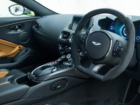 So here it is. The moment we have all been both anticipating and dreading – the final Aston Martin Vantage model. The legacy concludes with the first turbocharged V12 Vantage, with only 333 vehicles being rolled off the production line. The easily distinguishable Vantage shape has been accentuated by aero sections to improve airflow around the car. The front fenders are where you will find a beautifully sculpted feature that continues along the lower side of the car. To the rear, the diffuser has undergone a total redesign featuring a centre exit exhaust. To keep the twin-turbo V12 cool, Aston Martin has graced the run-out Vantage with a 25% larger grille in the front bumper with a beautifully sculpted carbon fibre bonnet with integrated vent to aid cooling. The overall track of the car has been widened contributing to the overall more aggressive styling where new 21” wheels sit.