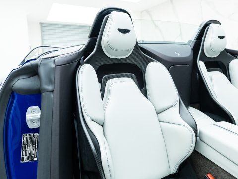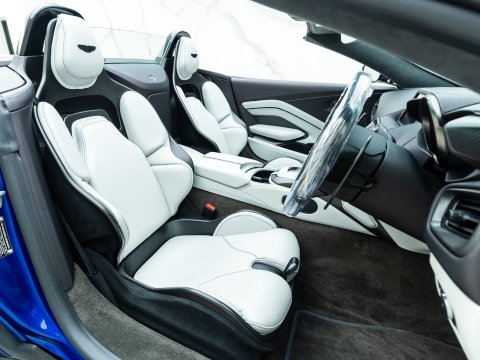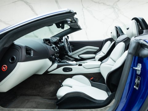 The easily distinguishable Vantage shape has been accentuated by aero sections to improve airflow around the car. The front fenders are where you will find a beautiful carbon fibre element that continues along the lower side of the car. To keep the twin-turbo V12 cool, Aston Martin has graced the run-out Vantage with a 25% larger grille in the front bumper with a beautifully sculpted carbon fibre bonnet with integrated vent to aid cooling. The Roadster version of the Vantage emulates this Aston recipe with sleek styling, aggressive aero and a 690bhp engine. The V12 Vantage Roadster is truly a car created for those that revel in the satisfying pursuit of challenge and reward with the added benefit of being in a very exclusive club as an owner.