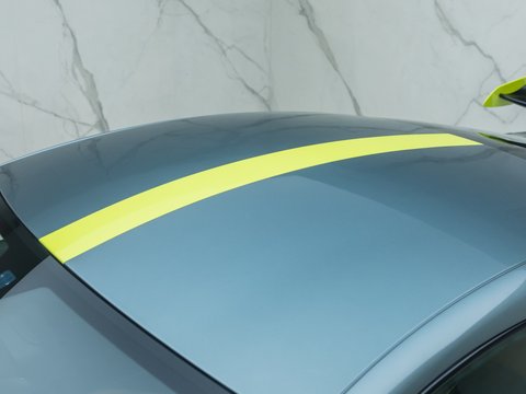 Available for the Vantage AMR was the Halo Pack, which dressed the exterior in a unique combination of Stirling Green paint with a Lime Green stripe. This idea was borrowed from Aston Martinās number 95 Vantage GTE car that won the 2016 World Endurance Championship. For this reason the same exterior design has been seen on the Vantage GT8, a rad car based off of the WEC race car. This distinctive colour scheme is matched to a unique interior combination, where the Halo Pack Stirling Green cars received Copper Tan leather with Lime Green accents to complement the exterior.