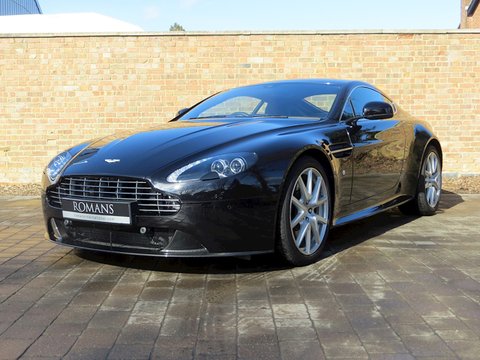 Ā Romans are proud to offer this stunning 2014/14 used Aston Martin V8 Vantage S Coupe for sale presented in 'Onyx Black' with Obsidian Black Leather interior. The Vantage S has key differences over the standard V8 Vantage as this model has an additional 10bhp/, sharper steering/, upgraded suspension/, bigger brakes and more. The S has been praised to be a much more engaging and involving car that delights and enhances the driving experience of the already exciting V8 Vantage.