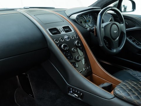 The Vanquish S Ultimate is the final variant of the Aston Martin Vanquish and signifies the end of the naturally-aspirated era for Aston Martin. Only 175 were ever produced globally, which includes Coupes and Volantes, giving the naturally-aspirated V12 the send-off it deserved. Three variants of the Ultimate Edition were produced, with this particular example being the "Ultimate Black" theme which includes the AML Special paintwork with Copper tan painted inserts, along with black exhaust tips, dark anodized brake calipers, and new five-spoke lightweight alloys. Along with additional exterior carbon fibre elements there is tan quilted stitching and further tan accents on the black leather interior, with a carbon-fibre twill fascia and 'Ultimate Edition" plaques and embroidery adorned throughout.