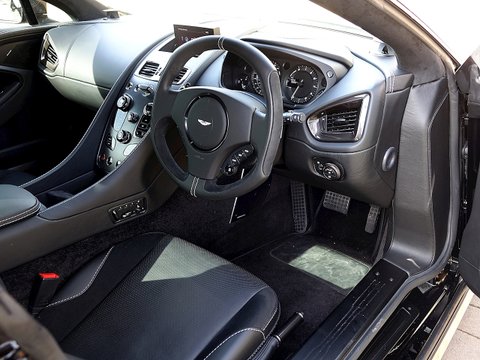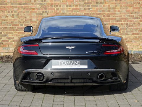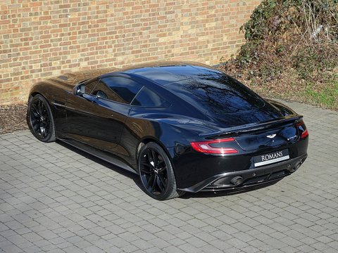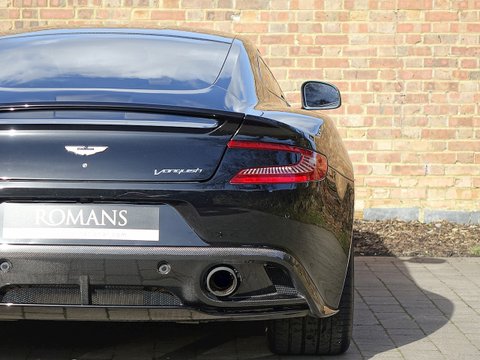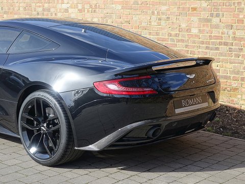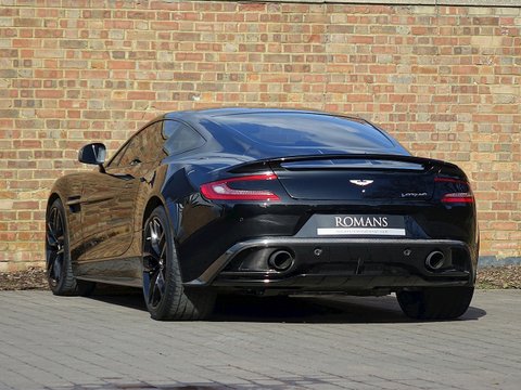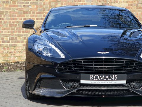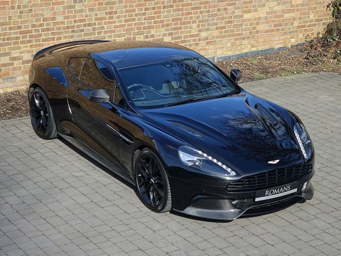 Romans are delighted to offer this spectacular 2015/15 Aston Martin Vanquish Carbon Edition for sale presented in 'AML Carbon Black' with Obsidian Black Leather/Pure Black Alcantara with Silver Stitching Interior. This beautiful special edition Vanquish comes with a fantastic host of optional extras including the Exposed Carbon Fibre Exterior Parts such as Carbon Fibre Roof/, Front Splitter/, Diffuser and more. Furthermore/, this vehicle comes with added benefit of a full Paint Protection Film (PPF) wrap by Topaz Detailing costing £5/,000. A fine example that is supplied with Aston Martin Manufacturer's Warranty until April 2018.The Vanquish Carbon Edition is unlike any other Vanquish. With an array of stunning carbon fibre body parts/, the carbon edition also receives gloss black exterior upgrades. We believe this all equates to being the best looking Vanquish on the market. Furthermore/, this low mileage example is in exceptional condition. Finally/, since this is a 2015 model/, Aston Martin gave this generation a power upgrade meaning it produces 565bhp. This means this Vanquish can reach 0-62 in 3.6 seconds and a top speed of 201mph.