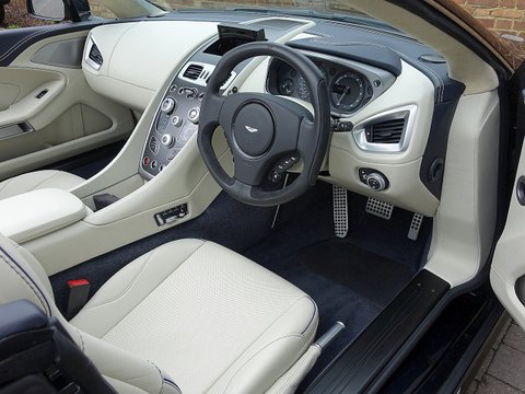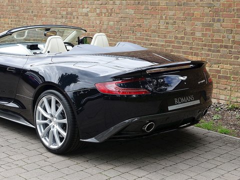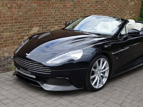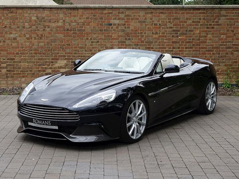 Romans are delighted to offer this beautiful 2016/16 Aston Martin Vanquish Volante for sale presented in 'Ultramarine Black' with Ivory Leather Interior. This stunning example comes with a lovely specification including the Satin Chrome Jewellery Pack, Iridium Interior Trim Pack and so much more. Furthermore, this vehicle is supplied with Aston Martin Manufacturer's Warranty until May 2019.The Aston Martin Vanquish Volante is known to be one of the prettiest and best GT convertibles on the market today. With our example being presented in Ultramarine Black, it contrasts superbly well with the exterior carbon fibre trim. Inside you are greeted with a lovely Ivory leather interior which is really set off by the exterior colour and 20" 10 -spoke silver alloys. Along with the sheer beauty of the Vanquish Volante, you get the amazing 5.9 litre V12 producing 565bhp andĀ 457 lb ft of torque meaning the Vanquish can accelerate from 0-62 mph in just 4.1 seconds and reach a top speed of 183mph.