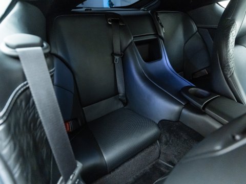 This 1 of 99 Aston Martin Vanquish Zagato Coupe features an entirely re-sculpted carbon fibre exterior, giving this fantastically well-proportioned car a more well-rounded look, with prominent flowing lines that give the Zagato it’s show-stopping road presence. This includes outstanding features such as the iconic Zagato ‘double-bubble’ roof, decisively larger 3D ‘Z’ pattern front grille and Vulcan inspired ‘blade’ tail lights to name but a few. Under its new eye-catching skin there have also been several performance enhancing revisions, such as increased power from the magnificent 5.9L V12, a more dynamic suspension setup and weight saving cast magnesium door structures. Step inside through the ‘swan wing’ doors and place the crystal glass ECU (Emotional Control Unit) in the start button to reveal this car’s true party piece, the noise. With its new quad tailpipe stainless steel exhaust system, the initial rumbles and burbles on start-up give you a sense of what is to come. When the valves open at around 3500rpm, the full onslaught of this cars orchestral symphony is delivered, one of the finest road-going exhaust notes you will ever hear. Overall this car represents a fantastic investment opportunity for a serious collector to own a stunning car overflowing with performance, heritage and style.