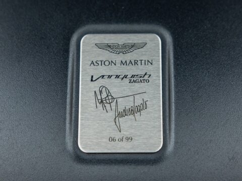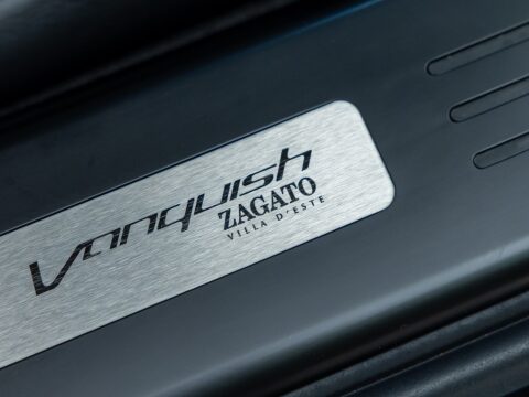 This 1 of 99 Aston Martin Vanquish Zagato Coupe features an entirely re-sculpted carbon fibre exterior, giving this fantastically well-proportioned car a more well-rounded look, with prominent flowing lines that give the Zagato it’s show-stopping road presence. This includes outstanding features such as the iconic Zagato ‘double-bubble’ roof, decisively larger 3D ‘Z’ pattern front grille and Vulcan inspired ‘blade’ tail lights to name but a few. Under its new eye-catching skin there have also been several performance enhancing revisions, such as increased power from the magnificent 5.9L V12, a more dynamic suspension setup and weight saving cast magnesium door structures. Step inside through the ‘swan wing’ doors and place the crystal glass ECU (Emotional Control Unit) in the start button to reveal this car’s true party piece, the noise. With its new quad tailpipe stainless steel exhaust system, the initial rumbles and burbles on start-up give you a sense of what is to come. When the valves open at around 3500rpm, the full onslaught of this cars orchestral symphony is delivered, one of the finest road-going exhaust notes you will ever hear. Overall this car represents a fantastic investment opportunity for a serious collector to own a stunning car overflowing with performance, heritage and style.