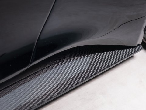 An entirely re-sculpted carbon fibre exterior gives this fantastically well-proportioned car a more well-rounded look, with prominent flowing lines that give the Zagato itās show stopping road presence. This includes outstanding features such as the iconic Zagato ādouble-bubbleā speed humps rendered in exposed carbon fibre, decisively larger 3D āZā pattern front grille and Vulcan inspired ābladeā tail lights to name but a few. Under itās new eye-catching skin there have also been several performance enhancing revisions, such increased power from the magnificent 6.0L V12, a more dynamic suspension setup and weight saving cast magnesium door structures. Step inside through the āswan wingā doors and place the crystal glass ECU in the start button to reveal this carās true party piece, the noise. With itās new quad tailpipe stainless steel exhaust system, the initial rumbles and burbles on start-up give you a sense of what is to come. When the valves open at around 3500rpm, the full onslaught of this cars orchestral symphony is delivered, one of the finest road going exhaust notes you will ever hear. Overall these cars represent a fantastic investment opportunity for a serious collector or enthusiast to own a unique pair of cars overflowing with performance, heritage and style.