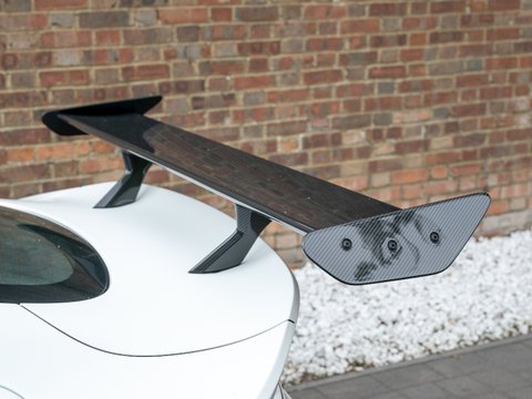 It features extensive use of carbon fibre on the front splitter, front and rear bumpers, wings, side sills, and rear diffuser. One of the most striking aesthetic features is the cutaway front wheel arch, which mimics the GTE racer. Those wishing for the most extreme aero configuration can specify the optional aero pack, which adds the large rear wing and additional corner elements to the front splitter.