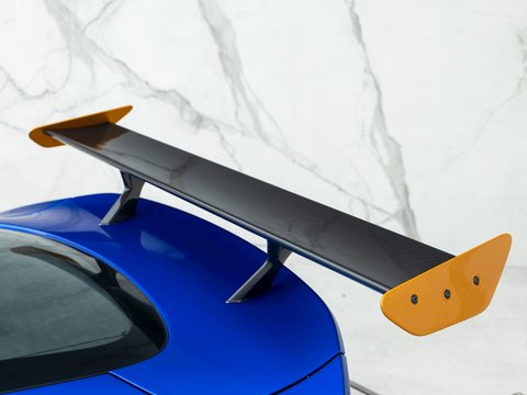 It features extensive use of carbon fibre on the front splitter, front and rear bumpers, wings, side sills, and rear diffuser. One of the most striking aesthetic features is the cutaway front wheel arch, which mimics the GTE racer. Those wishing for the most extreme aero configuration can specify the optional aero pack, which adds the large rear wing and additional corner elements to the front splitter.