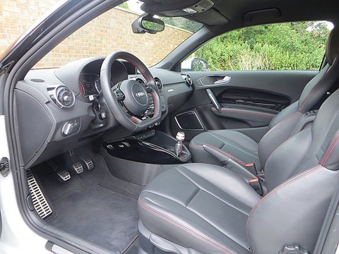 Step inside and you are greeted with a lovely low-slung driving position, leather sports steering wheel, textured gear lever and well positioned aluminium pedals. Fire up the A1 Quattro and the sports exhaust instantly comes into play as it delivers a beautiful warm burble.
