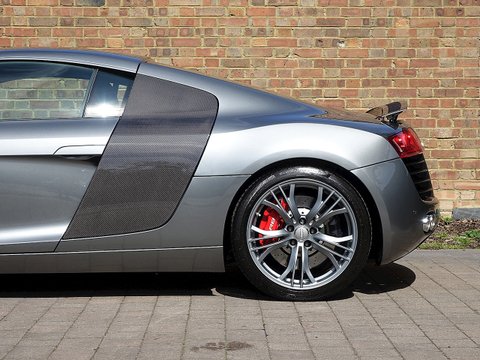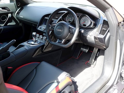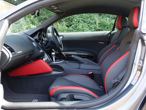 Romans are delighted to offer this wonderful 2012/62 Audi R8 Limited Edition for sale presented in 'Titanium Metallic' Audi Exclusive with Black Fine Nappa Leather Interior. Being 1 of 100 cars worldwide/, this 1 owner example is in immaculate condition and will come with a fresh service from Audi. A fine example that has to be one of the best on the market. Built to celebrate the tenth victory for Audi in the Le Mans 24 Hour Race/, this car comes with various optional extras as standard that distinguish it from other Audi R8's. First off the titanium effect paintwork is unique to this car as well as the 19" Titanium GT Alloys/, Satellite Navigation/, Premium Bang Olufsen Speakers and Mobile Phone Preparation. Audi's Magnetic Ride Adaptive Damping system is also included as are various trim updates. Mechanically/, the Limited Edition is identical to the standard V8 coupe meaning 425 bhp and 187 mph top speed. This version comes with Audi's R Tronic six speed single clutch semi-automatic gearbox. This is a great opportunity to own one of the rarest R8's ever made.