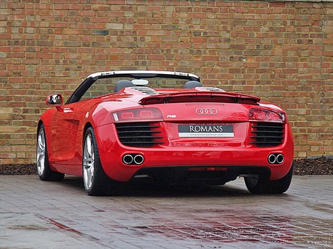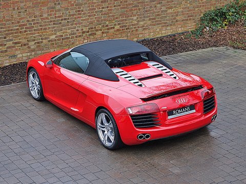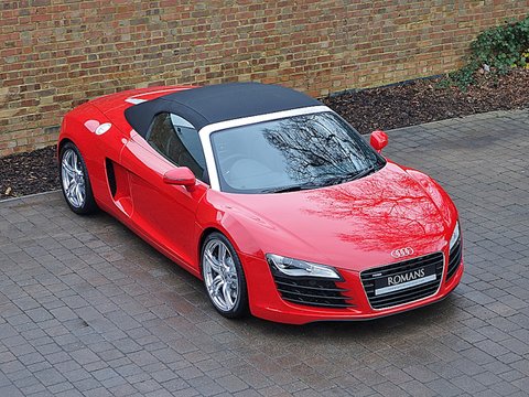 Ā Romans are pleased to offer this 2011/11 Audi R8 Spyder for sale presented in Brilliant Red with Black Leather. This is an exceptional example which comes with a very high specification and hasĀ been maintained and looked after to the very highest standards with no fewer than 6 Audi stamps in the service book and is in truly immaculate condition. We consider it to be the best example available on the market.