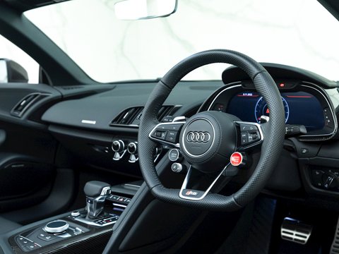 The V10 Performance Carbon Black Edition brings a host of options as standard to the facelifted R8. These included the Extended Black Styling Pack and Carbon Fibre Exterior Pack ā both very desirable options. The convertible roof brings you closer to the sound of that glorious V10 that sits immediately behind you. The R8 remains a very highly acclaimed naturally aspirated super car, a car that we canāt recommend highly enough.