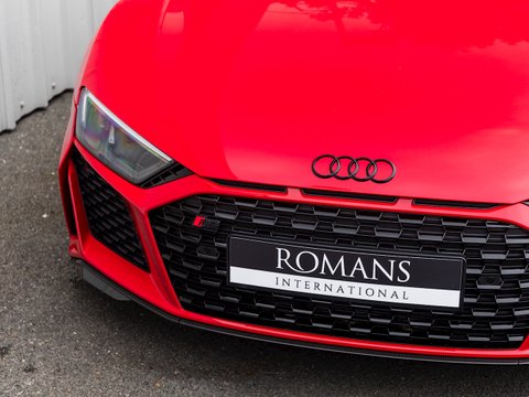 - Extended Black Styling Pack (Including: Front & Rear Audi Rings + Front & Rear R8 Logos + V10 Logo on Side of Each Wing + Windscreen Frame + Engine Air Vent Trim)