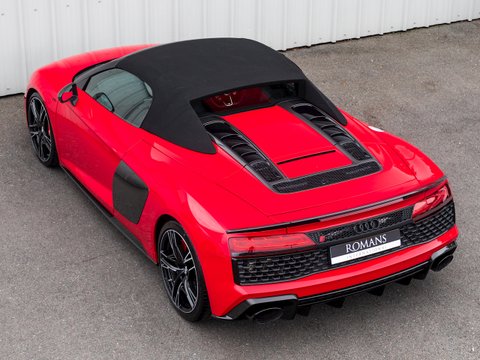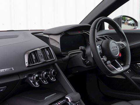 The V10 Performance Carbon Black Edition brings a host of options as standard to the facelifted R8. These included the Extended Black Styling Pack and Carbon Fibre Exterior Pack ā both very desirable options. The convertible roof brings you closer to the sound of that glorious V10 that sits immediately behind you. The R8 remains a very highly acclaimed naturally aspirated super car, a car that we canāt recommend highly enough.
