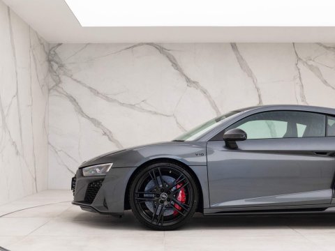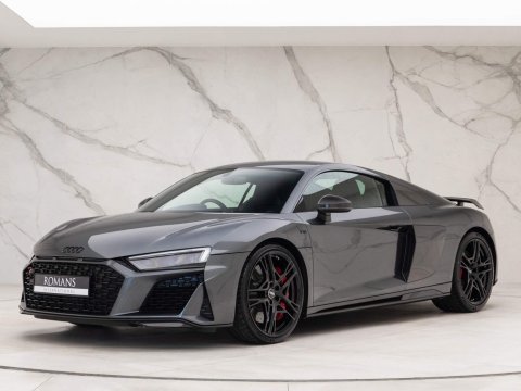 Highly Sought-After Carbon Black Edition - Including Comfort & Sound Pack with Bang & Olufsen Advanced Sound System - Full Paint Protection Film (PPF) - Audi Manufacturer's Warranty until December 2025 - Recently Serviced by Audi - UK SuppliedOptional Extras:V10 Performance Carbon Black Edition (Including: 20ā 5 Twin-Spoke Wheels in Gloss Anthracite Black + Extended Black Styling Pack + Audi Magnetic Ride with CFRP Anti-Roll Bar + Carbon Fibre Sideblades + Carbon Fibre Exterior Styling Pack + Ceramic Brakes with Red Brake Calipers)Daytona Grey Metallic PaintCarbon Exterior Styling Pack (Including: Front Spoiler Lip + Rear Spoiler + Lower Side Sill + Rear Diffuser Insert + Door Sill Trims with Illuminated Aluminium Inlay + Mirror Housings + Engine Air Vent Surround Trim)Extended Black Styling Pack (Including: Front & Rear Audi Rings + Front & Rear R8 Logos + V10 Logo on Side of Each Wing + Windscreen Frame + Engine Air Vent Trim)Comfort & Sound Pack (Including: Bang & Olufsen Advanced Sound System + Full-Leather Upholstery & Trim)Carbon Fibre Interior TrimStandard Features:Audi Parking Assistance PackageAudi Phone Box with Wireless ChargingAudi Virtual CockpitAuto-Dimming Rear-View MirrorCruise ControlDAB Digital RadioElectrically Adjustable Heated & Folding Exterior MirrorsHeated Front SeatsHigh-Beam AssistInterior LightingLED Daytime Running LightsLED HeadlampsParking System Plus with Reversing CameraR8 3-Spoke Flat Bottom Multi-Function Steering WheelR8 Bucket SeatsTyre Pressure Monitoring System