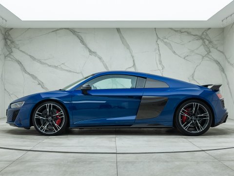 Along with the added power from being the V10 Performance version the Carbon Black Edition brings a host of options as standard including the Twin-Spoke Dynamic Design Alloys, Audi Magnetic Ride, Extended Black Styling Pack, Carbon Fibre Mirrors & Sideblades as well as Ceramic Brakes with Red Brake Calipers. The Carbon Black Edition represents the best of the best - the culmination of almost 20 years of the iconic Audi R8.