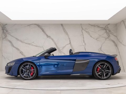 Highly Desirable Carbon Black Edition - Including Exterior Style Package in Gloss Carbon & Bang & Olufsen Sound System - Manufacturer Warranty until February 2024 - Low Mileage Example - UK SuppliedOptional Extras:20-inch 5 Twin-Spoke Dynamic Design Aluminium Wheels in Gloss Black with Diamond Cut FinishAscari Blue Metallic PaintBang & Olufsen Sound SystemExtended Interior Style Pack including Badges in Gloss BlackExterior Style Pack in Gloss CarbonExterior Mirrors Carbon FibreAudi Exclusive Door Still Trims in Gloss Carbon with Illuminated Aluminium InlayElectrically Adjustable Seats with Pneumatic Seat Backrest and Side Bolster AdjustmentR8 Sports SeatsStandard Features:Audi Parking Assistance PackageAudi Phone Box with Wireless ChargingAudi Virtual CockpitAuto-Dimming Rear-View MirrorCruise ControlDAB Digital RadioElectrically Adjustable Heated & Folding Exterior MirrorsHeated SeatsHigh-Beam AssistInterior LightingLED Daytime Running LightsLED HeadlampsParking System Plus with Reversing CameraR8 3-Spoke Flat Bottom Multi-Function Steering WheelTyre Pressure Monitoring System