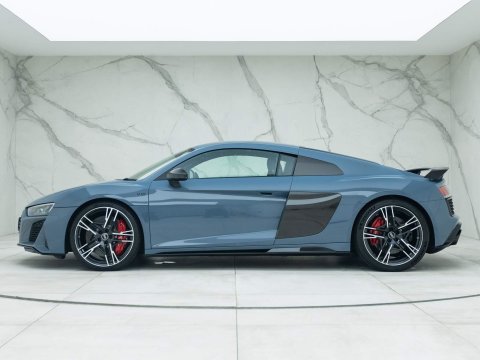 With the R8 now in it's very last year of production before Audi retire their petrol-powered supercar in favour of electric powertrains, one of the most recent variants is the ‘V10 Performance Quattro Edition’ which represents the best of the best - the culmination of almost 20 years of the iconic Audi R8. The V10 Performance Quattro Edition brings a host of options as standard to the latest version of the R8 include the visually striking Carbon Fibre Side Blades and the high-quality Bang & Olufsen sound system, and pairs this with heated leather sports seats with a diamond stitch design amongst a whole host of the R8's well known technology and convenience features.