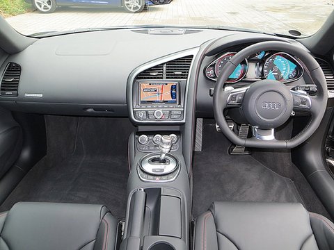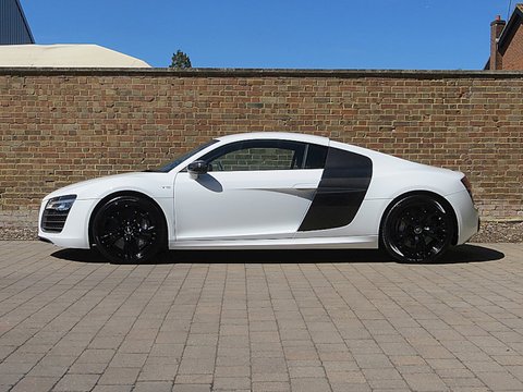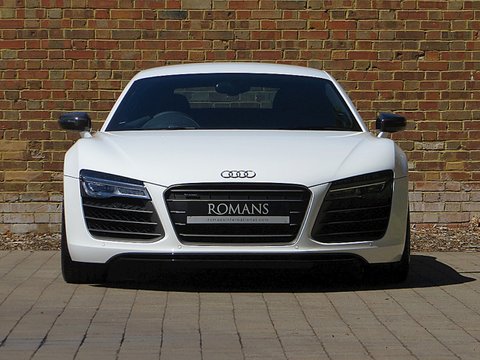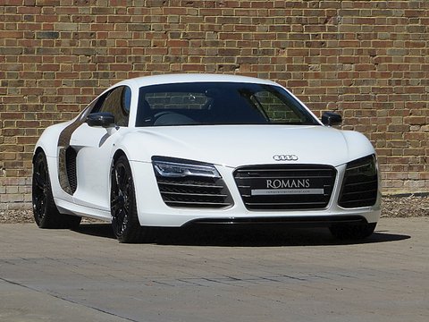 Ā Romans are proud to offer this 2013/62 used Audi R8 V10 Plus S-Tronic for sale presented in 'Ibis White' with Black Nappa Leather Interior. The V10 Plus model comes equipped with a huge amount of features including Ceramic Brakes and lots of Carbon Fibre to both the exterior and interior. Furthermore/, this particular example has the all-important Bang Olufsen Sound System option and is supplied with Audi's manufacturer's warranty until 2016.