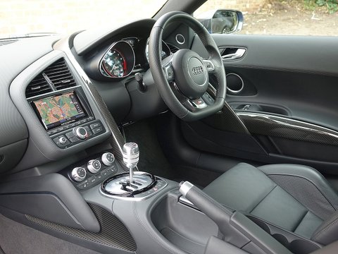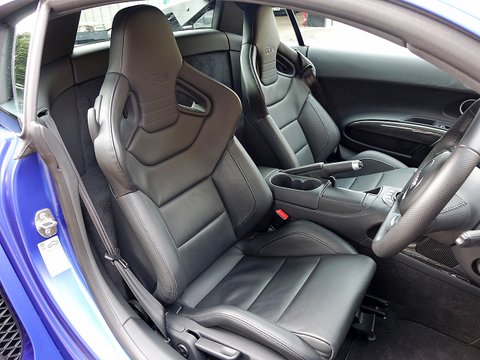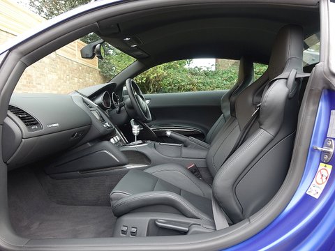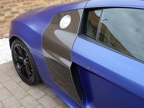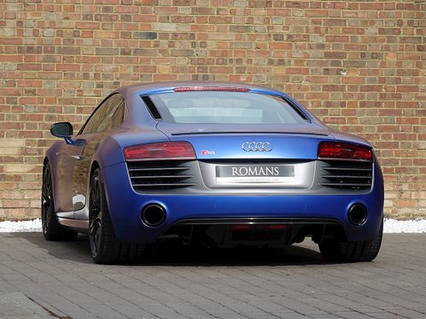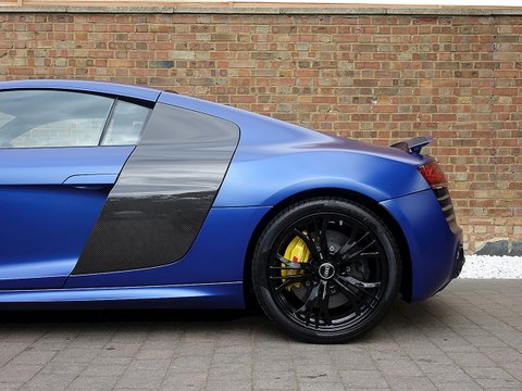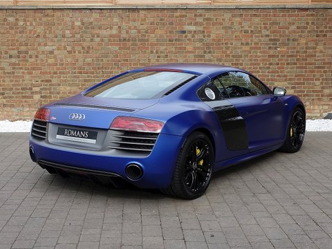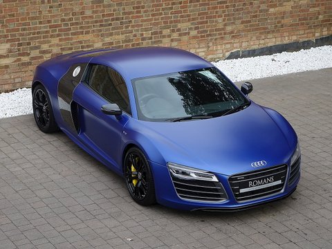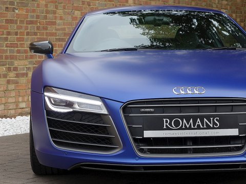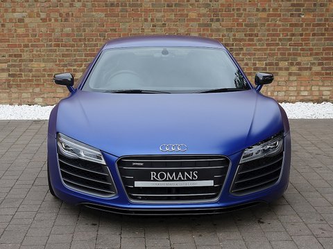 Ā Romans are delighted to offer this unique 2015/15 Audi R8 V10 Plus for sale presented in 'Matt Sepang Blue' with Black Leather Interior. The V10 Plus model comes equipped with a huge amount of features including Carbon Ceramic Brakes and plenty of Carbon Fibre to both the exterior and interior. Furthermore/, this example comes with the rare manual gearbox which is very sought after and extremely engaging to drive. Finally/, this vehicle is supplied with Audi Manufacturer's Warranty until March 2018 and must be one of the best looking cars on the market.