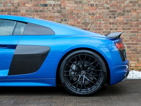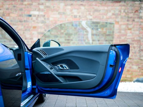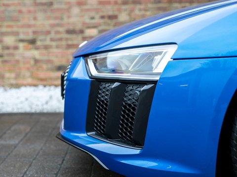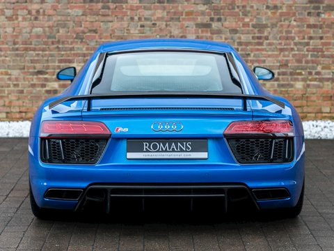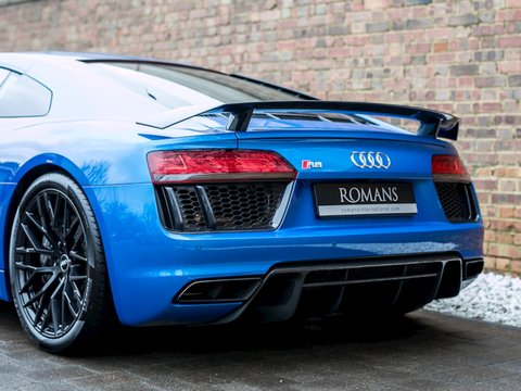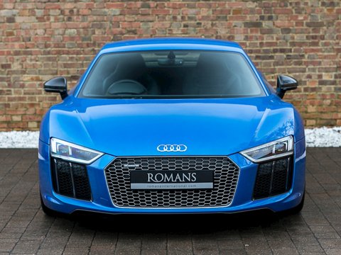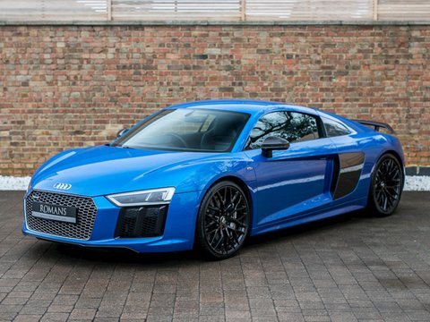 Ā Romans are pleased to offer this 2015/65 Audi R8 V10 Plus for sale presented in 'Ara Blue Crystal Effect' with Black Fine NappaĀ Leather Interior. This vehicle comes with a fantastic specification and is supplied with Audi Manufacturer's Warranty until November 2018.This is the all-new second generation Audi R8 V10 Plus which has been redesigned from the ground up. It's now lighter and flatter/, with a more muscular stance than it's predecessor. With 601bhp and maximum torque of 413 lb ft/, the new R8 V10 Plus accelerates from 0-62mph in just 3.2 seconds making it not just the fastest Audi production car in history/, but also the first to reach 205mph.Gloss Carbon elements give the V10 Plus an unmistakable motor-racing look/, while a fixed rear spoiler wholly provides greater downforce for enhanced grip in corners. Activate the Performance mode on Audi Drive Select and the controllable exhaust flaps to enhance the R8's signature engine sound.Inside/, you'll find a high level of standard equipment. MMI Navigation Plus with Audi Connect and Audi Drive Select enable you to tailor the ride to suit you. The fully customisable Audi Virtual Cockpit puts all the information you need directly in front of you/, which replaces the traditional dashboard with a stunning all-digital display.Engine start-up/, exhaust sound/, driving dynamics and gear changes can all be controlled from the buttons on the R8 performance steering wheel. The interior boasts refined materials/, precise workmanship and innovative technologies.