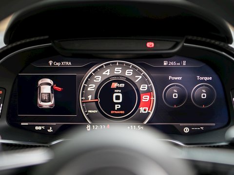 Engine start-up, exhaust sound, driving dynamics and gear changes can all be controlled from the buttons on the R8 performance steering wheel. The interior boasts refined materials, precise workmanship and innovative technologies.