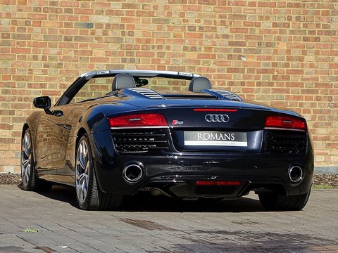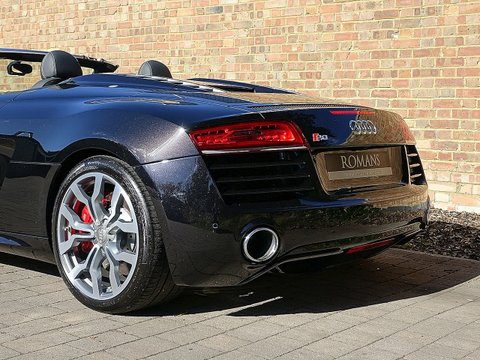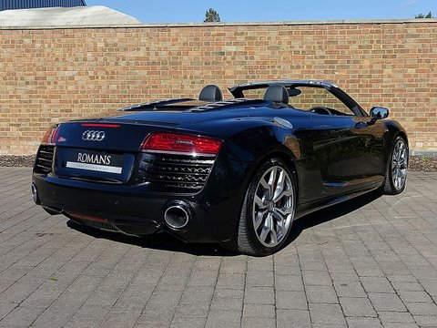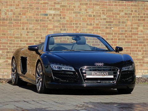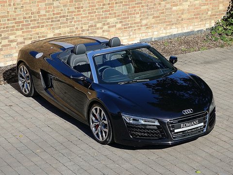 Ā Romans are proud to offer this stunning 2015/15 Audi R8 V10 Spyder for sale Presented in 'Panther Black' Metallic with Black Diamond Stitched Fine Nappa Leather. This 1 Owner Vehicle come's with a lovely specification and is supplied with Audi Manufacturer's Warranty until June 2018.