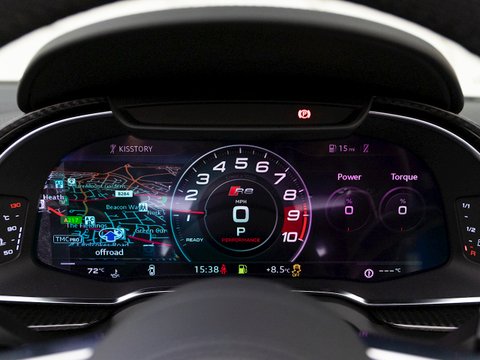A new carbon anti-roll bar has been introduced to the facelift and along with the variable ratio system, which finetunes the steering to your desirability, means the R8 V10 Performance feels much more poised around corners. The speed is as intoxicating as it has ever been - the V10 concerto sings as it nears the top of the rev range, coaxing you to apply more pressure to the throttle pedal. The carbon ceramic brakes, standard on the V10 Performance ensure that speed is scrubbed off swiftly.