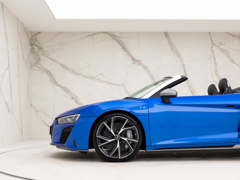 The V10 Performance Edition brings a host of options as standard to the facelifted R8. These included the V10 Performance Sport Suspension and Gloss Carbon Fibre Inlays. The convertible roof brings you closer to the sound of that glorious V10 that sits immediately behind you. The R8 remains a very highly acclaimed naturally aspirated super car, a car that we canāt recommend highly enough.