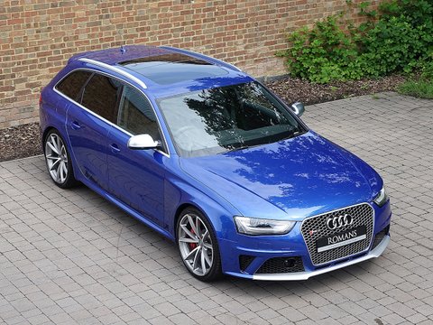 Ā Romans are proud to offer this stunning 2014/64 Audi RS4 Avant for sale presented in 'Sepang Blue' with Black Fine Nappa Leather. This 1 owner vehicle comes with a big specification and is supplied with the balance of Audi Manufacturer's Warranty until September 2017.