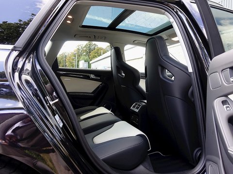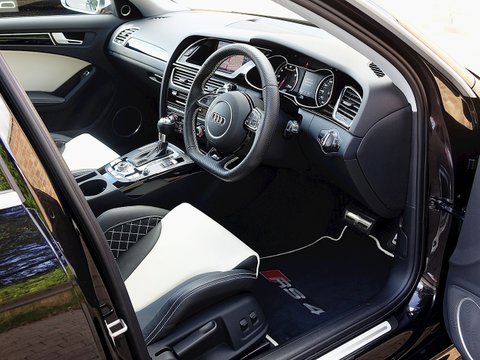 Romans are pleased to offer this stunning 2015/15 Audi RS4 Avant Limited Edition for sale presented in 'Panther Black' Metallic with Black/Cream Two Tone Diamond Quilted Leather Seats. Believed to be the run out model for the wonderful Audi RS4 Avant, the Limited Edition comes with a lot of options as standard and comes with the special two-tone seats with diamond stitching. Further highlight optional extras include the Sports Exhaust, Suspension Plus, Carbon Fibre Engine Bay and so much more. A fine example that comes supplied with Audi Manufacturer's Warranty until June 2018.