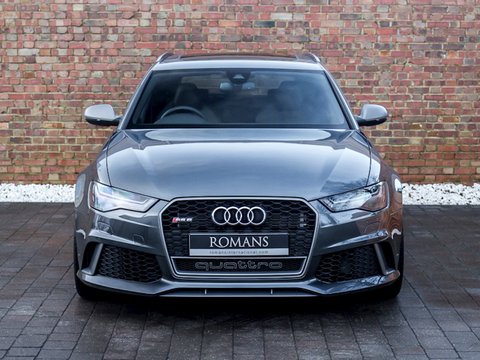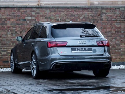 Romans are delighted to offer this beautiful 2017/67 Audi RS6 Avant Performance for sale presented in 'Daytona Grey' Pearl Effect Paint with Valcona Black Leather Interior. This 1 owner example comes with the all-important £1,083 Panoramic Glass Sunroof optional extra. Being the "Performance" model, this RS6 Avant comes with a lot of standard equipment from the wonderful sounding Sports Exhaust System to the BOSE Surround Sound System, Carbon Fibre Inlays With Blue Thread and so much more. A truly spectacular example that is supplied with Audi Manufacturer's Warranty until September 2020.