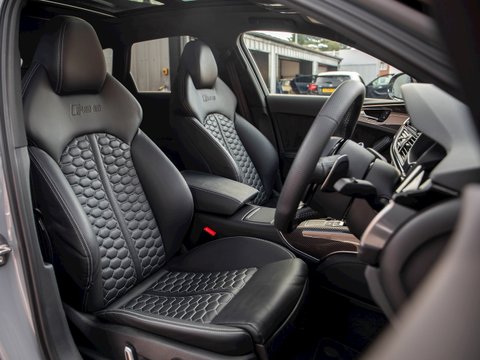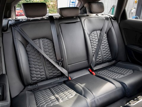 - Valcona Leather Honeycomb-Quilted Design with RS6 Embossing on Front Seats in Black with Contrast Grey Stitching