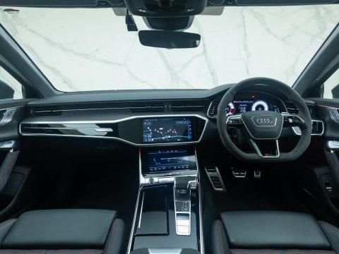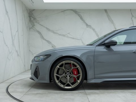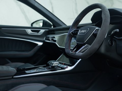This particular car is the Performance Carbon Vorsprung Edition, an evolution which is arguably the best RS6 ever. With 29 more horsepower and bigger turbos, the RS6’s 0-62mph falls to a staggering 3.4 seconds, with power figures sitting at 621bhp and four wheels propelling all 2100kg of this high-performance family car. The performance increase is not the only change to the Performance edition of the RS6 with other upgrades including the new 22” Forged Alloy Wheels, locking centre differential, new software for the rear axle and Continental SportContact 7 Performance Tyres which dramatically improve handling. Reduced sound deadening also intensifies the rumble of the awesome V8 within the cabin.