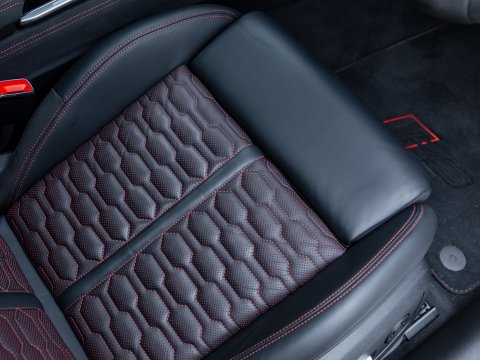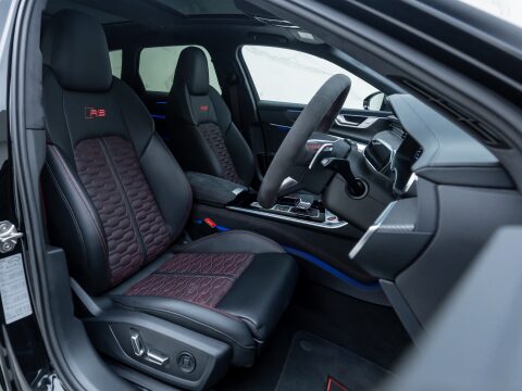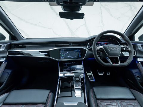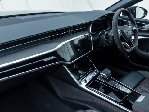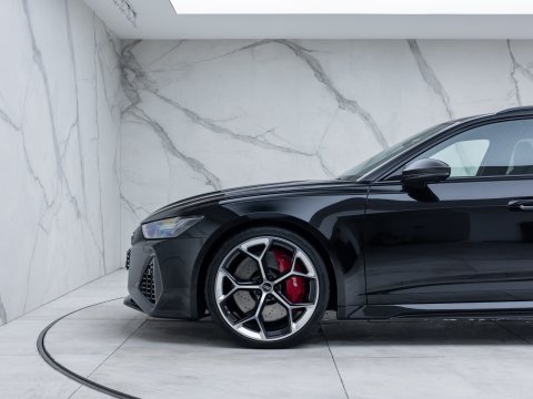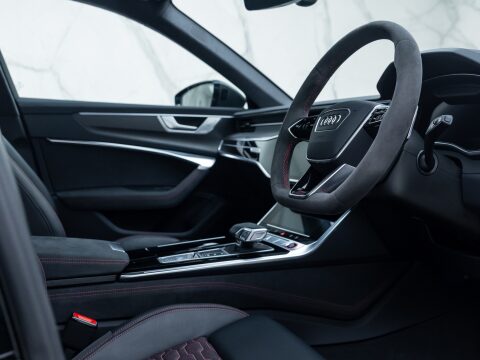 This particular car is the Performance Carbon Vorsprung Edition, an evolution which is arguably the best RS6 ever. With 29 more horsepower and bigger turbos, the RS6’s 0-62mph falls to a staggering 3.4 seconds, with power figures sitting at 621bhp and four wheels propelling all 2100kg of this high-performance family car. The performance increase is not the only change to the Performance edition of the RS6 with other upgrades including the new 22” Forged Alloy Wheels, locking centre differential, new software for the rear axle and Continental SportContact 7 Performance Tyres which dramatically improve handling. Reduced sound deadening also intensifies the rumble of the awesome V8 within the cabin.