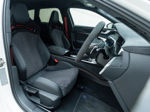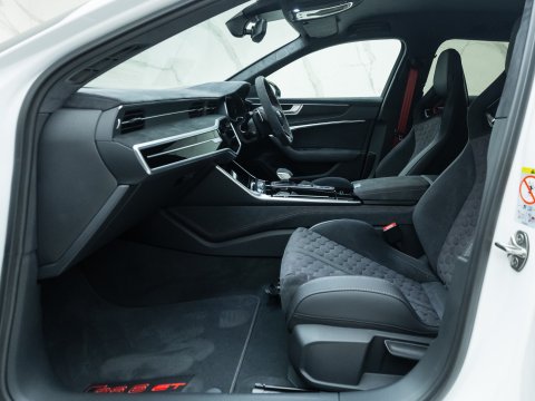For the first time ever on an RS6, Audi has fitted carbon fibre bucket seats and made carbon ceramic brakes standard. A carbon fibre bonnet with exposed weave detailing gives the GT a bold, unmistakable identity, complemented by vented carbon front wings and a dramatic rear spoiler. In a move aimed squarely at driving purists, Audi has removed the electric anti-roll system and replaced it with manually adjustable coilover suspension, enhancing both performance and handling dynamics.