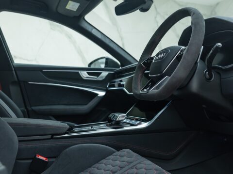 For the first time ever on an RS6, Audi has fitted carbon fibre bucket seats and made carbon ceramic brakes standard. A carbon fibre bonnet with exposed weave detailing gives the GT a bold, unmistakable identity, complemented by vented carbon front wings and a dramatic rear spoiler. In a move aimed squarely at driving purists, Audi has removed the electric anti-roll system and replaced it with manually adjustable coilover suspension, enhancing both performance and handling dynamics.