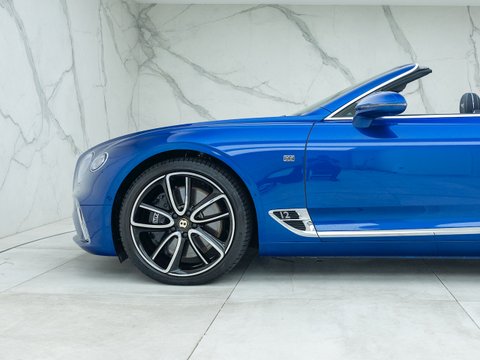 The First Edition was available during the first year of production for the 3rd generation Bentley Continental GT for both the coupe which launched in 2018 and the Convertible in 2019. Essentially a specification pack which cost £34,700 over and above the standard Continental GT, the First Edition includes various options as standard including the much sought after Bentley Rotating Display as well as the Mulliner Driving Specification, Touring Specification, City Specification and much more. The First Edition is best distinguished from the regular model by the various plaques and badging which include an exterior Union Jack badge, First Edition sill plaques and special embroidery to the seats. This particular example also features the Centenary Specification a £1,385 option available exclusively during the 2019 production year. This package features a host of Centenary Gold highlights including the badges, dials, treadplates and key, to celebrate 100 years of Bentley from 1919 to 2019.