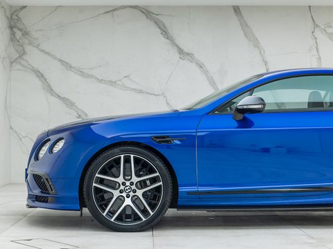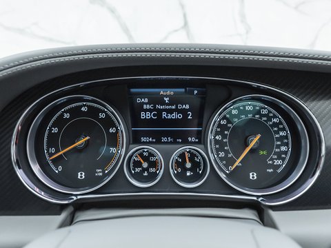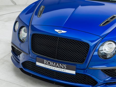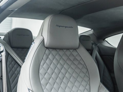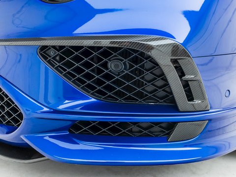 With 700 bhp and 750 lb ft of torque, this Supersports is not only rapidly fast, but extremely luxurious and comfortable. Building on the previous generations example the Supersports is 40 kg lighter than the standard car thanks largely to the carbon ceramic brakes and the optional titanium exhaust used on the GT3-R. Other noticeable differences include the carbon fibre trim, revised front bumper which includes a carbon fibre splitter and the rear aerodynamic diffuser and rear wing. Brightware has turned to gloss black and features on the front grille, rear bumper, door handles and window surrounds, while the headlamps and rear lights are dark tinted. Side sill extension and bonnet vents are finished in carbon fibre, the front wing vents are gloss black and so are the rifled exhaust pipe finishers. Supersports badging and 21" alloy wheels in gloss black complete the dramatic performance focused look.