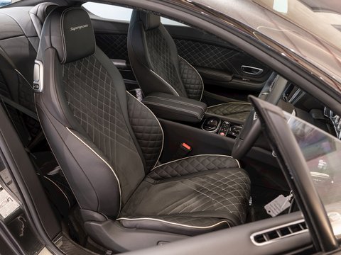 With 700 bhp and 750 lb ft of torque, this Supersports is one of the fastest GT cars money can buy. Building on the previous generations example the Supersports is 40 kg lighter than the standard car thanks largely to the carbon ceramic brakes and the optional titanium exhaust used on the GT3-R. Other noticeable differences include the carbon fibre trim, new front bumper which includes a carbon fibre splitter and the rear aerodynamic diffuser. Brightware has turned to gloss black and features on the front grille, rear bumper, door handles and window surrounds, while the headlamps and rear lights are dark tinted. Side sill extension and bonnet vents are finished in carbon fibre, the front wing vents are gloss black and so are the rifled exhaust pipe finishers. Supersports badging and 21" alloy wheels in gloss black with machined surfaces complete the dramatic performance focused look. Step inside and you are greeted with an alcantara lined interior with diamond quilting as well as embroidered Supersports emblems on the seat headrests. Overall, the Supersports is a very special car and being 1 of 710 examples worldwide means it is also highly exclusive.