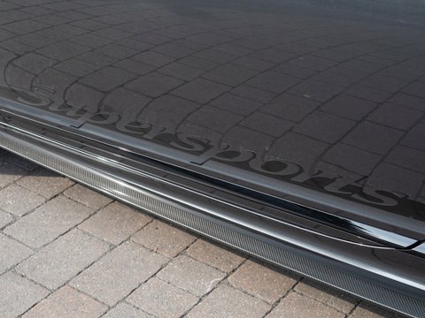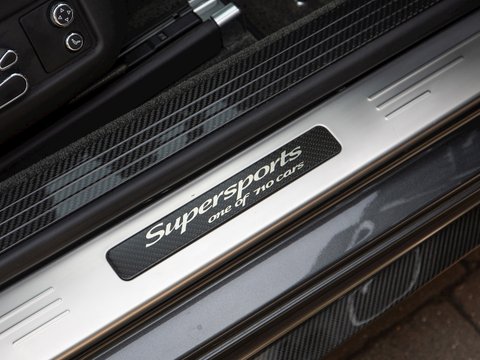 With 700 bhp and 750 lb ft of torque, this Supersports is one of the fastest GT cars money can buy. Building on the previous generations example the Supersports is 40 kg lighter than the standard car thanks largely to the carbon ceramic brakes and the optional titanium exhaust used on the GT3-R. Other noticeable differences include the carbon fibre trim, new front bumper which includes a carbon fibre splitter and the rear aerodynamic diffuser. Brightware has turned to gloss black and features on the front grille, rear bumper, door handles and window surrounds, while the headlamps and rear lights are dark tinted. Side sill extension and bonnet vents are finished in carbon fibre, the front wing vents are gloss black and so are the rifled exhaust pipe finishers. Supersports badging and 21" alloy wheels in gloss black with machined surfaces complete the dramatic performance focused look. Step inside and you are greeted with an alcantara lined interior with diamond quilting as well as embroidered Supersports emblems on the seat headrests. Overall, the Supersports is a very special car and being 1 of 710 examples worldwide means it is also highly exclusive.